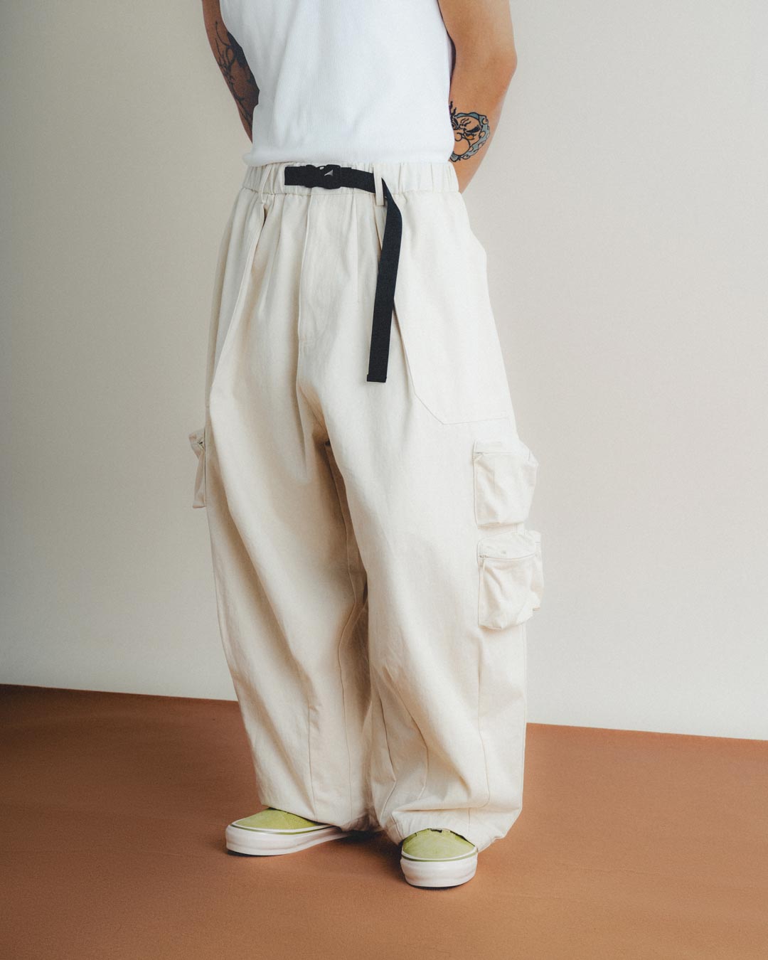 The Futuremade Studio (FTMD.)’s iconic baggy silhouette: the Over Pants — makes its return in an all-new colorway. Introducing the Greige White Cargo Over Pants: the freshest, cleanest iteration to date. A refined balance of tone and texture, for your everyday wear.