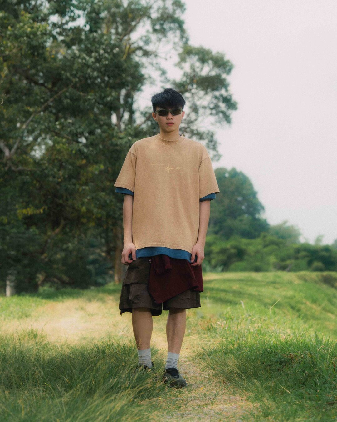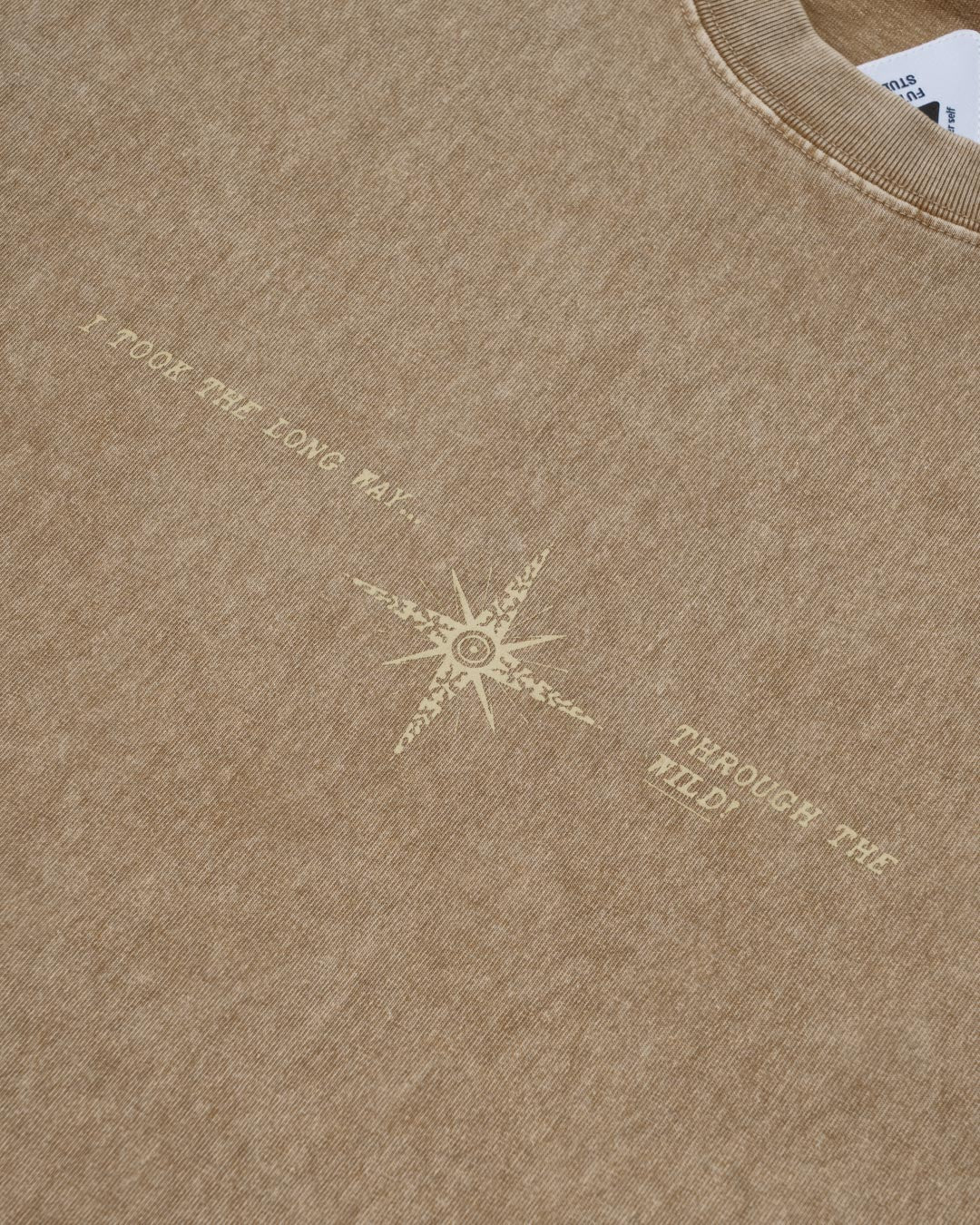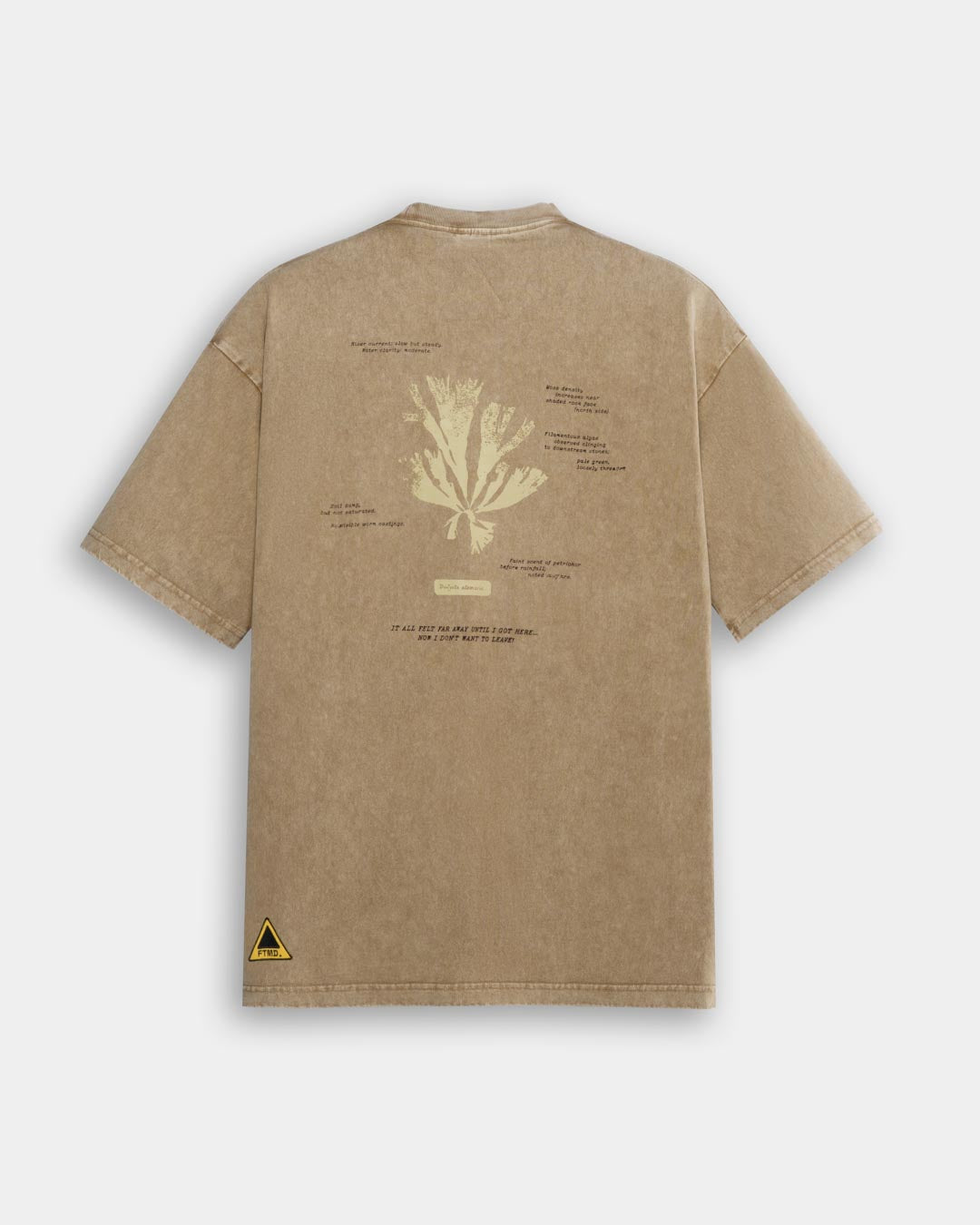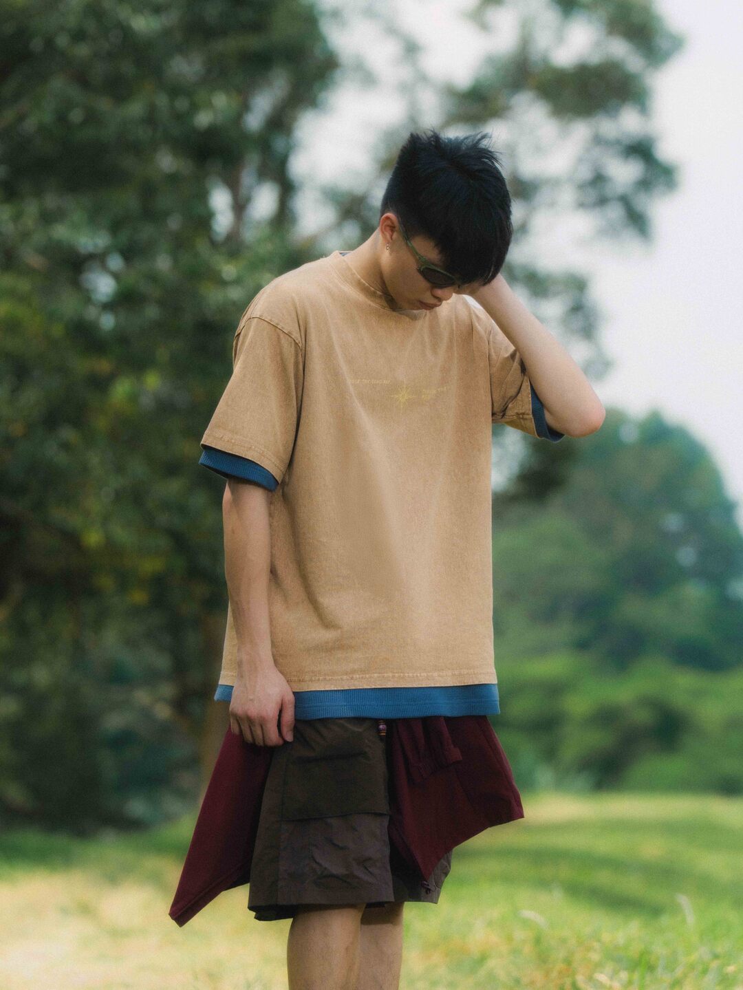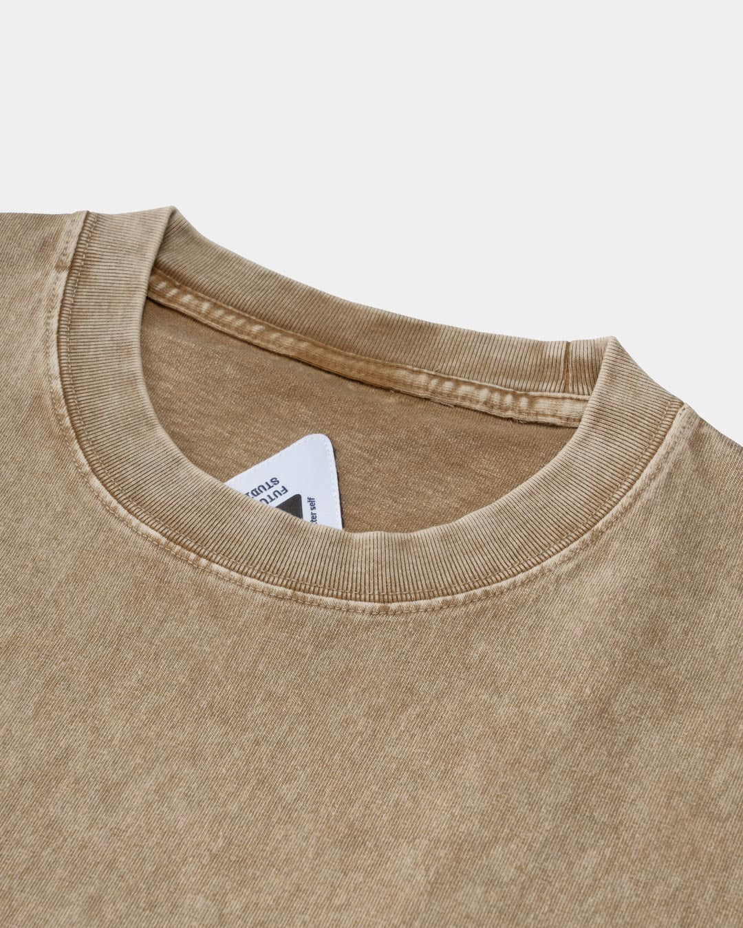 This washed tee has undergone a special treatment to achieve the washed effect. It is not defective.