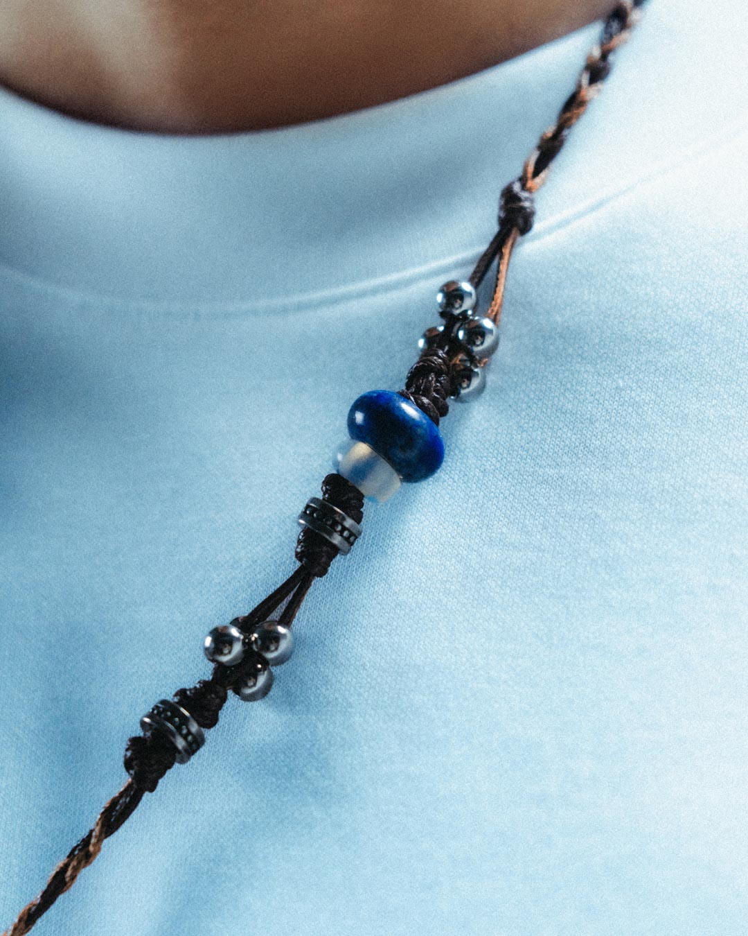 Handmade braided necklace made from waxed leather.